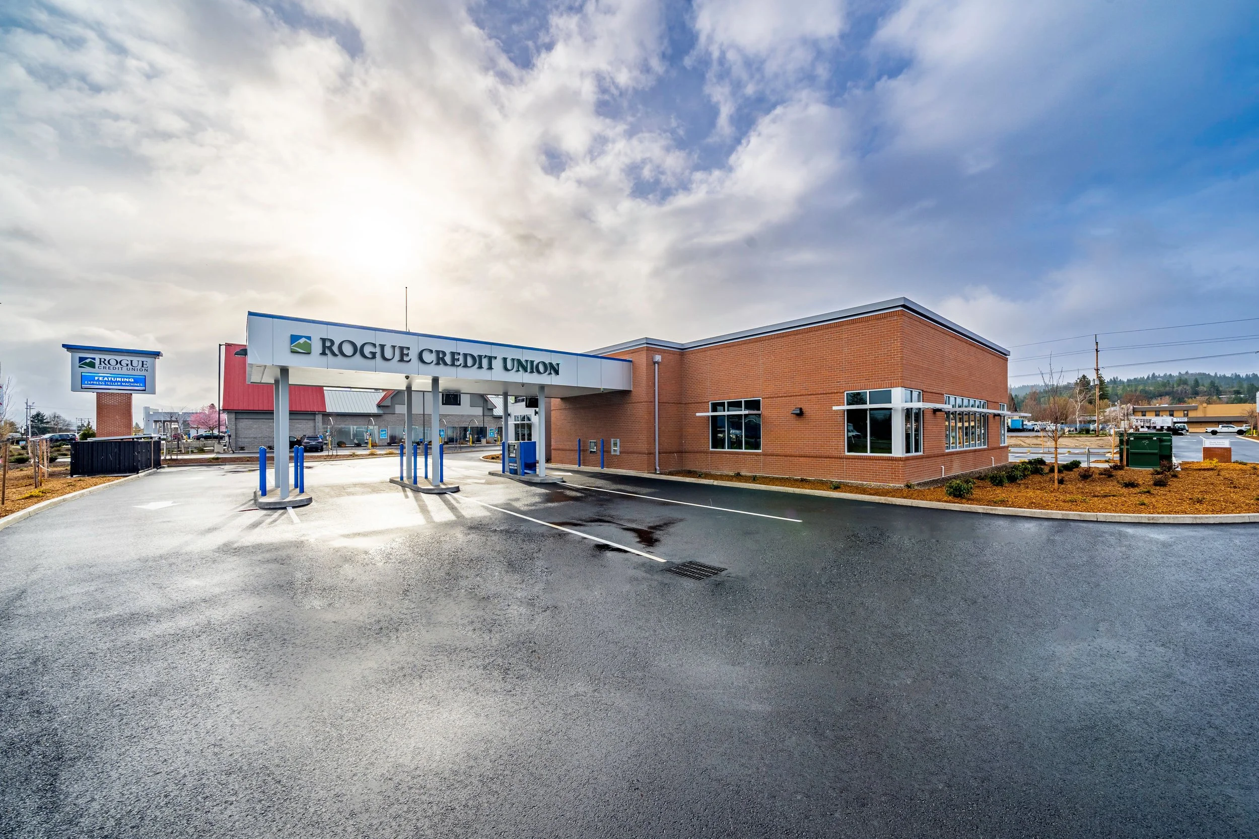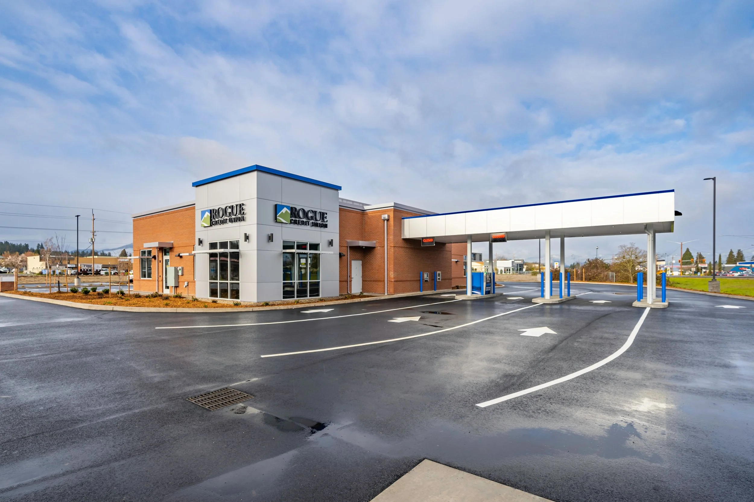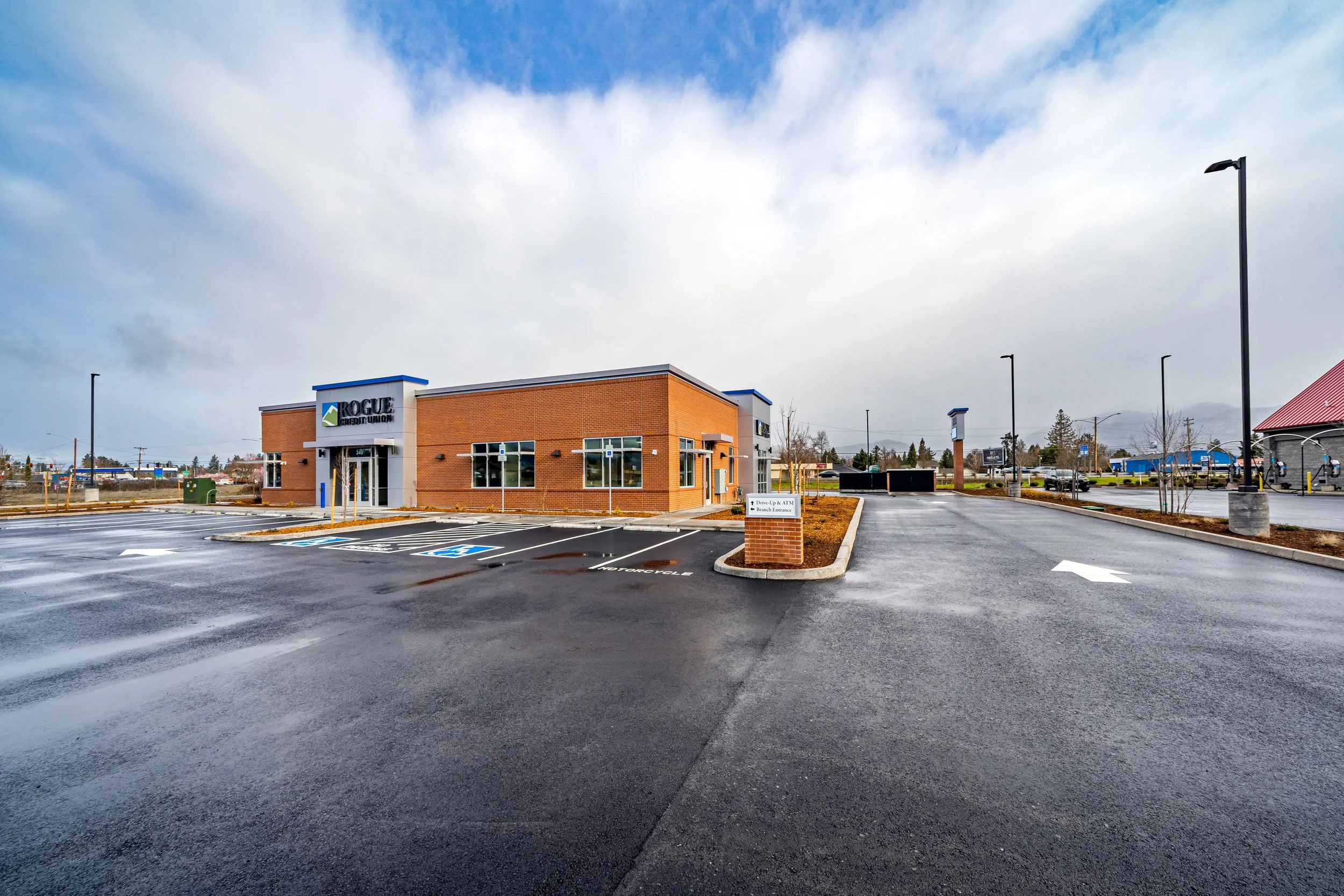 New construction of Rogue Credit Union branch located in Grants Pass Oregon.